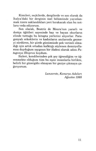 Şili'li yazar Luis Sepulveda'nın en büyük tutkusu, yolculuk yapmak, dünyayı dolaşmak, insanları tanımak ve onların öykülerini dinlemek. Patagonya Ekspresi, dinlediği öyküleri kendi yorumuyla anlatan, olağanüstü anlatma yeteneğiyle gerçeği zenginleştirerek edebiyata dönüştüren Luis Sepulveda'nın yaptığı ilginç yolculukların bir dökümü. Bolivya sınırını geçerken başına gelenleri, Ekvador'un unutlmuş bir köşesinde gündüzleri İletişim Sosyolojisi dersi verip gecelerini bir genelevde tüketmesini, uğradığı duraklarda dinlediği inanılması güç öyküleri, gemicilerin ruhlarını kurtarmak için hayalet gemilerin peşinde dolaşan denizcileri, Pinochet'nin cellatlarının bile susturamadığı Patagonya'nın Sesi radyosunun ağaç tepelerindeki serüvenini, sabahtan akşama kadar kırık dökük uçaklarıyla, uçsuz bucaksız topraklar üzerinde şaraptan cesede kadar her şeyi taşıyan pilotları, yalın ve keyifli üslubuyla anlatıyor. Okurunu Latin Amerika'da, Patagonya'nın ıssız topraklarında, Ateş Ülkesi'nde gezdiriyor. Patagonya Ekspresi, yolculuk notları olmaktan öte, yolculuk üzerine bir rehber kitap. Dünyayı nasıl tanımamız, ona nasıl bakmamız, onu nasıl sevmemiz gerektiğini öğreten bir kılavuz. Yazarın, hem diktatör Pinochet dönemindeki sürgün yıllarında, hem de yolculuklarında aldığı notlar üzerine kurulu Patagonya Ekspresi, anlatım bütünlüğü taşıyan bir dizi anlatı. Luis Sepulveda, gerçek serüvenin verdiği müthiş mutluluğu okuruna aşılamaya çalışıyor. Adını, bir zamanlar Patagonya'da çok tutulan, ancak yeterince hızlı gitmediği için seferlerine son verilen Patagonya Ekspresi'nden alan bu kitap, Luis Sepulveda'nın en güzel yapıtlarından biri.