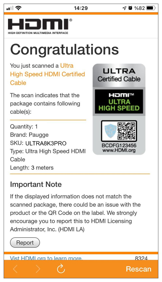 ULTRA HDMI Kablo Sertifikası, kablonun; tasarım, malzeme kalitesi ve tüm üretim süreçlerinin ULTRA HDMI Kablo Sertifikasyon Programı tarafından gerekli koşulan bütün kriterlere uygunluğu ve üretim sonucunda kablonun HDMI Licensing tarafından yapılan bütün testleri başarı ile geçmesi koşulu ile “HDMI Licensing” tarafından verilir. HDMI kablonun ULTRA HDMI Sertifikasına sahip olduğu, HDMI kablo kutusu üzerine yapıştırılan benzersiz bir doğrulama etiketi ile ilan edilir. Her ürünün sertifika etiketi kendisine özeldir ve diğerlerinden farklıdır. Bu sertifika etiketi kullanıcılara ULTRA HDMI Sertifikasının gerçekliğini HDMI LLC tarafından yönetilen özel bir karekod okuyucu yardımı ile doğrulayabilme imkanı verir.