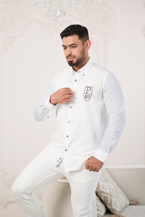 Paul Martin Armalı Arkası Baskılı Garnili Pamuklu Regular Fit Marina Gömlek