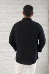 Erkek Siyah Pamuk Baskılı Desenli Sert Yaka Regular Fit Gömlek - Image 1