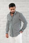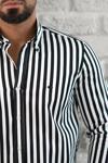 Paul Martin Kalın Çizgili Yaka Düğmeli Cepsiz Regular Fit Gömlek