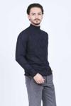 Detay: Yarım balıkçı yaka, desenli yün triko kazak;