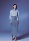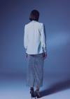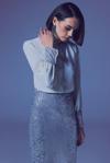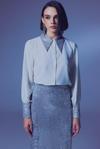 Ön düğmeli, kalça boy, balon kol, yaka ve kol payet detaylı salaş gömlek.