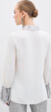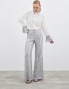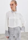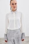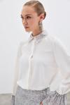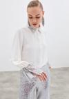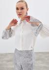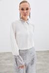 Ön gizli pat, kalça altı boy, kol ve yaka detaylı, payetli gömlek.