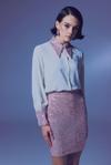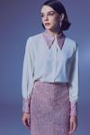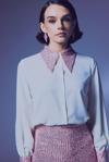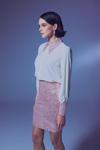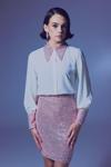 Ön düğmeli, kalça boy, balon kol, yaka ve kol payet detaylı salaş gömlek.