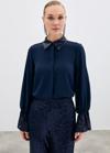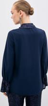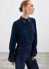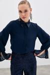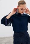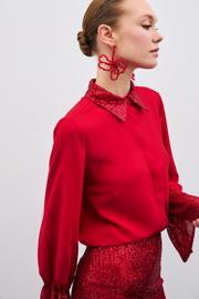 Ön gizli pat, kalça altı boy, kol ve yaka detaylı, payetli gömlek.