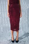 Sateen Payet Detaylı Kalem Etek - Bordo