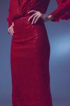 Yüksek bel, arka fermuarlı, iç astarlı, midi boy, payetli kalem etek.