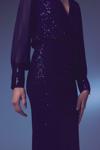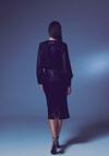 Yüksek bel, arka fermuarlı, iç astarlı, midi boy, payetli kalem etek.