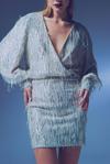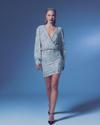 Yüksek bel, arka fermuarlı kapama, iç astarlı, payet detaylı mini etek.