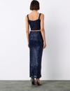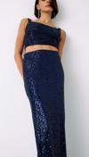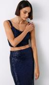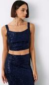 Düz yaka, kalın askılı, iç astarlı, yan fermuarlı, payet crop bluz.