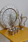 Eşsiz tasarımı ve yüksek kalitesiyle öne çıkan Payitaht 8 Parça Zemzem Takımı, özel anlarınıza zarafet katmak için özenle tasarlandı. Bu set, Türkiye’nin en çok aranan ve talep gören zemzem seti olma özelliğini taşıyor. Paslanmaz çelik malzemesiyle üretilen bu takım, dayanıklılığı ve şıklığı bir araya getirerek uzun ömürlü kullanım sunar. Ürün Özellikleri Kendi özel kutusunda tarafınıza gönderilecek olan ürün 8 parçadan oluşmaktadır. ; 6 Adet Zarif Fincan, 1 Adet Tepsi ve 1 Adet Zemzem İbriği ; Ürünün sunum/sergi boyutu: 35x35x20 cm’dir. ; Ürün bakımı: Ürünün zamak kısımları makinede kesinlikle yıkanmamalıdır. ;