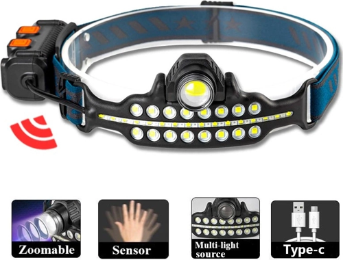 Fithome W690 7 Aydınlatma Modlu Xpe Cob Led Sensörlü Dahili Pilli Usb Şarj Edilebilir Kafa Feneri