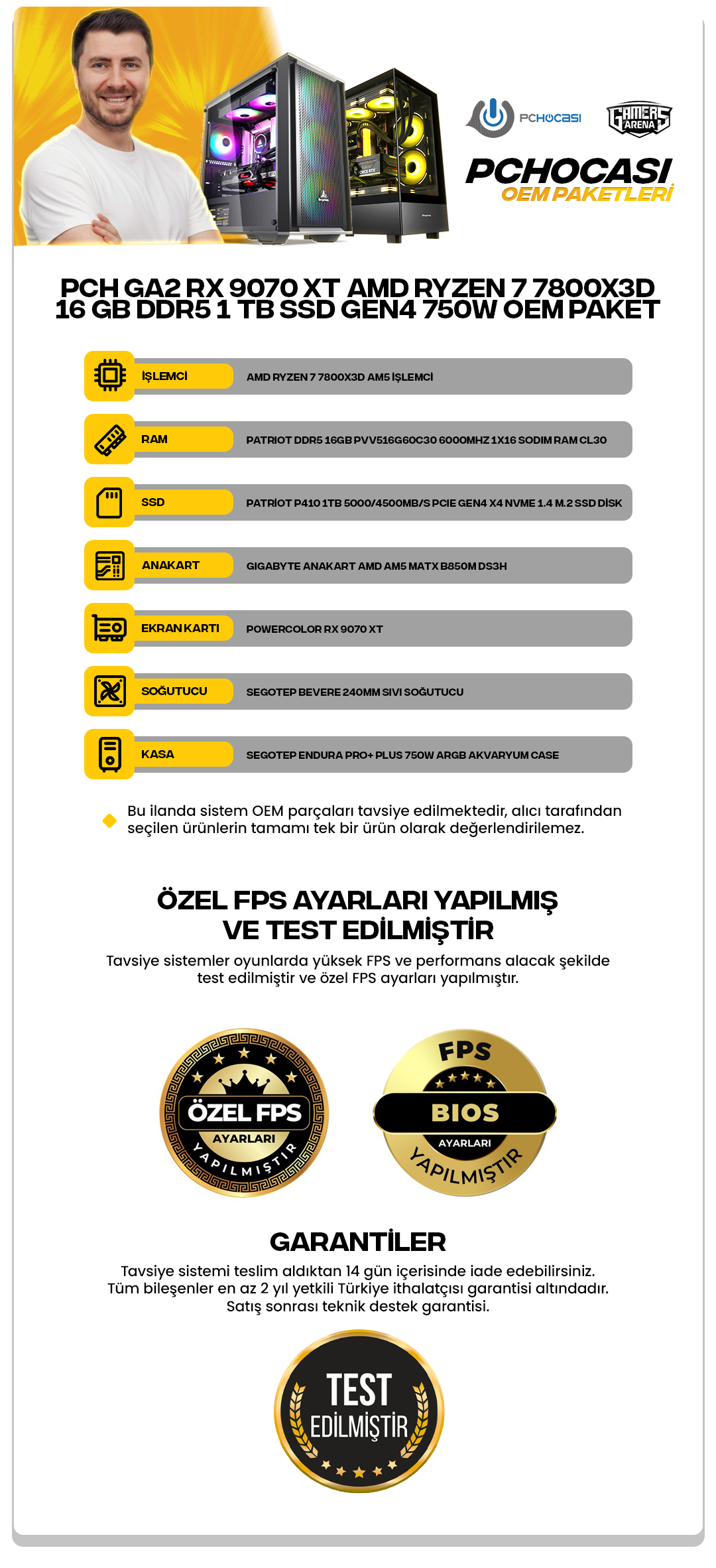 PCH GA2 RX 9070 XT AMD RYZEN 7 7800X3D 16 GB DDR5 1 TB SSD GEN4 750W OEM PAKET