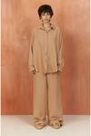 Polyester, modal ve likra karışımı kumaştan üretilmiş, dayanıklı ve esnek bir yapıya sahip; Günlük kullanım için ideal, rahat ve şık bir görünüm sunan casual tasarım; Dokuma kumaş tipi sayesinde uzun süreli konfor ve nefes alabilirlik sağlar; Regular kalıp ile vücuda tam oturan ancak sıkıştırmayan bir yapıya sahiptir; Bisiklet yaka detayı ile modern ve sade bir stil oluşturur; Düz deseni sayesinde kolayca kombinlenebilir ve zamansız bir şıklık sunar; İnce yapısıyla hafif ve serin tutan, mevsim geçişlerinde ideal bir seçimdir; Basic silueti ile her gardıropta temel parça olarak yerini alır; her tür alt giyimle uyum sağlar; Uzun boy pantolon kesimiyle bacakları olduğundan daha uzun gösterirken, boru paça tasarımı modern bir görünüm kazandırır; Normal bel yüksekliğiyle rahat bir oturuş sunarken, çift cepli yapısı pratik kullanım imkanı tanır; Standart kol tipiyle günlük hareket özgü;