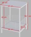 Ürün Ölçüleri: Üst levha: 45x45cm, Yerden yükseklik: 51cm, Alt ve üst levha arası: 45cm, Metal sepet: 38x38cm.