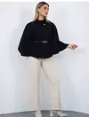 VerdeBlanco Kapüşonlu Cep Detaylı Panço Siyah - Image 1