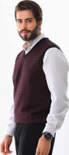 Erkek V Yaka Desenli Süveter 7627 Bordo