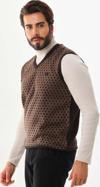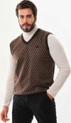 Erkek V Yaka Desenli Süveter 7627 Kahverengi