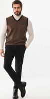 Pelikan Erkek V Yaka Desenli Süveter 7627 Kahverengi