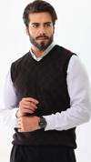 Oppland Erkek Kahverengi Baba Süveteri Baklava Desenli V Yakalı İnce Yün Dokuma Kahverengi XL - Image 1