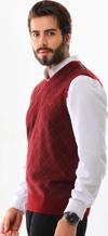 Pelikan Erkek V Yaka Desenli Süveter 7627 Bordo
