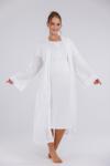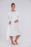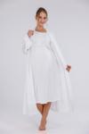 - Rahat ve şık tasarımıyla dikkat çeken ekru keten çizgili hamile lohusa sabahlık-gecelik takımı, evde geçirilen zamanları daha konforlu hale getirir.