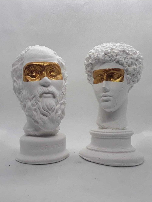 İki parçadan oluşan set, farklı boyutlardaki heykel büstlerle dekoratif çeşitlilik sağlar