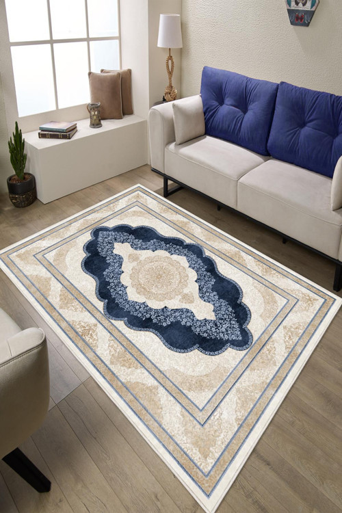Klasik Desenli Dijital Baskılı Kaymaz Taban Yıkanabilir Salon Halısı Oturma Odası Halısı