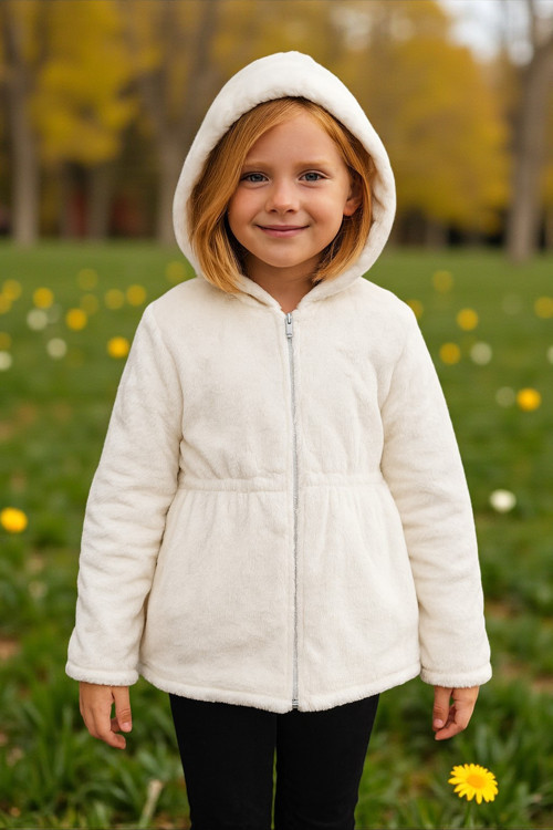 Kız Çocukları İçin Peluş Kapüşonlu Mont