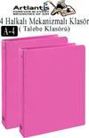 Artlantis Pembe 4 Halkalı Klasör 2 Adet A4 PVC Öğrenci ve Ofis Tipi Evrak Sunum Klasörü İç Cepli Otomatik Mekanizmalı Büro