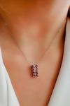 Pembe baget zirkon taşlı italyan tasarımı gümüş lüks kolye