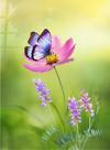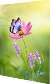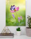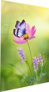 Pembe Çiçeğe Konan Mor Kelebek Cam Tablo | Hediyelik, Dekoratif, Ofis, Mutfak