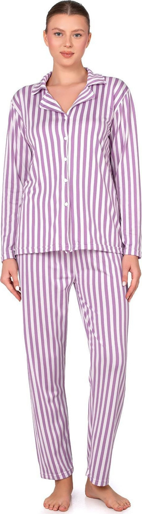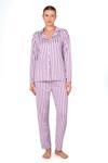 İçi şardonlu yumuşak Lizbon kumaştan üretilen bu pembe çizgili pijama takımı, serin havalarda vücudu nazikçe sararak sıcak tutar.