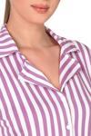 Önden düğmeli gömlek yaka üst ve rahat kalıplı, lastikli bel düz paça alt parça sayesinde hem uyurken hem de evde dinlenirken konforlu bir kullanım sunar.