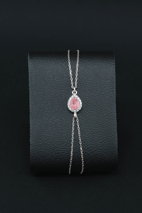 Pembe Damla Tasarım 925 Ayar Gümüş Kadın Ayarlanabilir Bileklik, zarif bir görünüm sunan özel bir aksesuardır. Bu bileklik, pembe damla tasarımlı detaylarla süslenmiş ve 925 ayar gümüşten üretilmiştir. Pembe renk, romantizmi ve zarafeti temsil ederken, gümüş malzeme dayanıklılığı ve estetiği yansıtır. Ayarlanabilir yapısı sayesinde her bileğe uyum sağlar ve her anında şıklığınızı tamamlar.