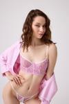 Pembe Desenli Ayarlanabilir Askılı Balenli Özel Bölgesi Açık Tanga Külotlu Kadın Sütyen Takımı