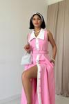 Pembe Geniş Yakalı Halter Kollu Elbise
