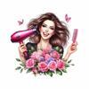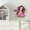 Pembe Güllü ve Kelebekli Kuaför Kız Duvar Stickerı