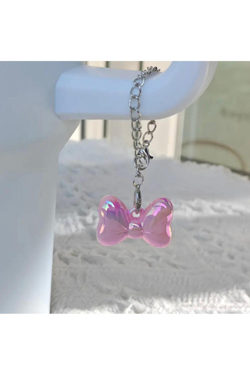 Tatlı mı tatlı, şeffaf pembe rengiyle parıldayan bu minik fiyonk charm; termos sapı, çanta fermuarı, anahtarlık ya da telefon askısı gibi birçok yerde kullanılabilecek kadar çok yönlü!