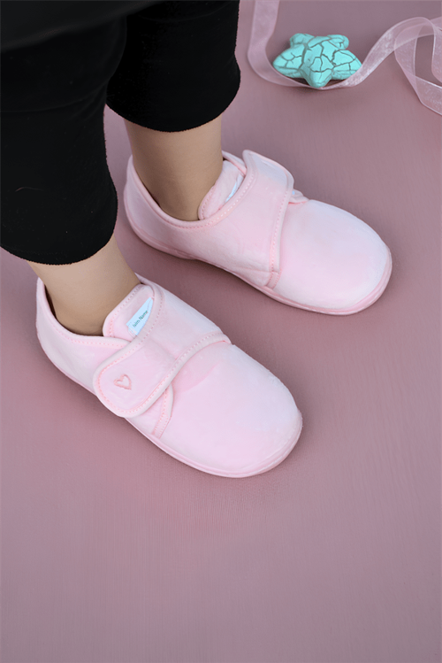 Pembe Kalp Nakışlı Kız Çocuk Cırt Cırtlı Panduf-F-729