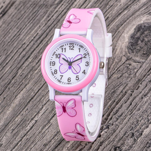 Pembe Kelebek Figürlü Analog Rakamlı Kız Çocuk Kol Saati ST-304350