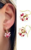 Ose Shop Pembe kuvars Pembe Turmalin ve İncili 925ayar Gümüş Üzerine Altın Kaplama Tasarım Salkım Küpe