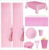Zenviva Pembe Masa Örtüsü, Pembe Masa Eteği, 2 Pembe Fon, 8 Pembe Tabak, 8 Pembe Bardak, 8 Pembe Mısır Kutusu, 10 Pembe Çatal, 10 Pembe Peçete