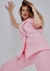 Kruvaze yaka tasarımıyla güçlü ve sofistike bir siluet sunar.