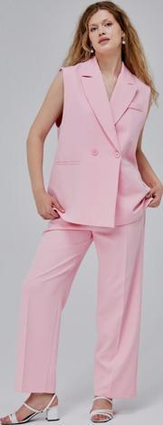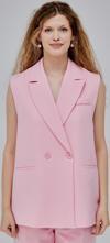 Pembe Oversize Kruvaze Yaka Astarlı Yelek