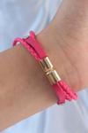 Pembe Renk Zirkon Taşlı Deri Çoklu Bileklik - TJ-BB6350