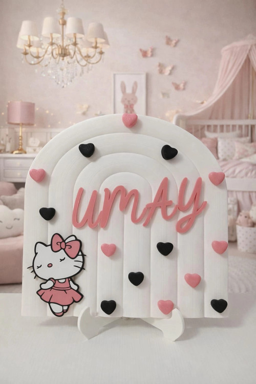 Kişiye özel bebek kapı süsü ürünleri, sıradan dekorlardan farklı olarak tamamen bebeğe özel bir anlam taşır. Üstelik Hello Kitty ve kalp teması; tatlı, modern ve zamansız olduğu için bebek odası dekorasyonunda çok tercih edilir. Pembe-siyah kalp detayları ise ürüne hem şıklık hem de dikkat çekici bir kontrast katar.