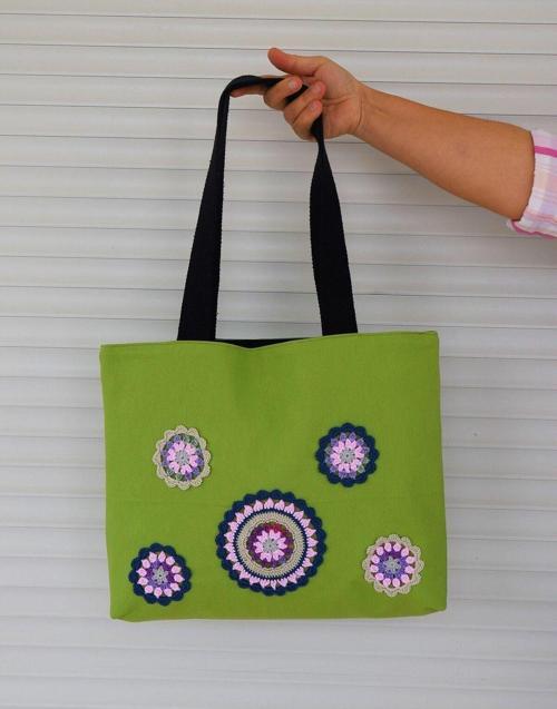 pembe/lacivert yavrulu mandala   detaylı yeşil bez çanta
