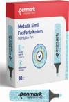 Penmark Fosforlu Kalem Metalik Simli Açık Mavi 1-5 MM Kesik Uçlu İşaretleme Kalemi (10 Lu Paket)